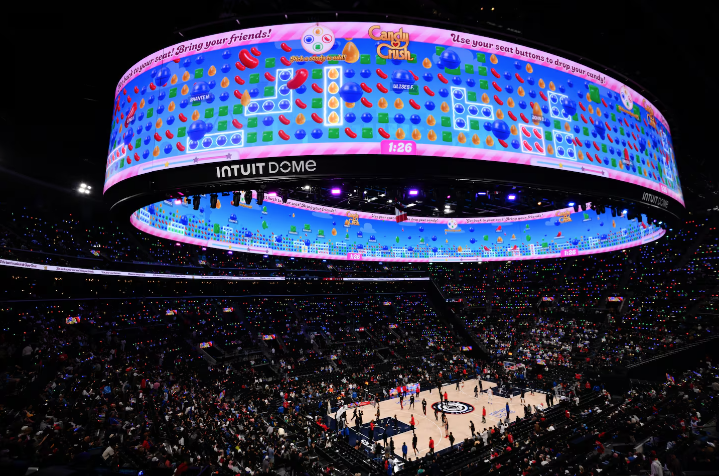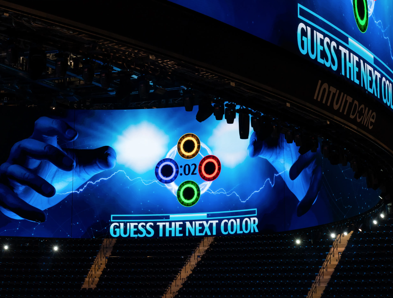 The heart of this engagement lies in the seamless integration of the Intuit Dome’s unique hardware—specifically the 18,000 in-seat buttons, PixMob LED lights, and real-time audio tracking. As Creative Director, I oversaw creative development and production of custom-coded games like "Repeat the Beat," a stadium-sized version of Simon Says, and an immersive "Mentalist" color-guessing experience. From high-stakes Trivia and branded Candy Crush to modern, tech-infused twists on stadium classics like Karaoke, Dance Cam, and Kiss Cam, every moment is designed for to keep fans engaged and energized. By harnessing the power of the Halo we ensure that every fan isn't just watching the game—they are a vital part of the show.