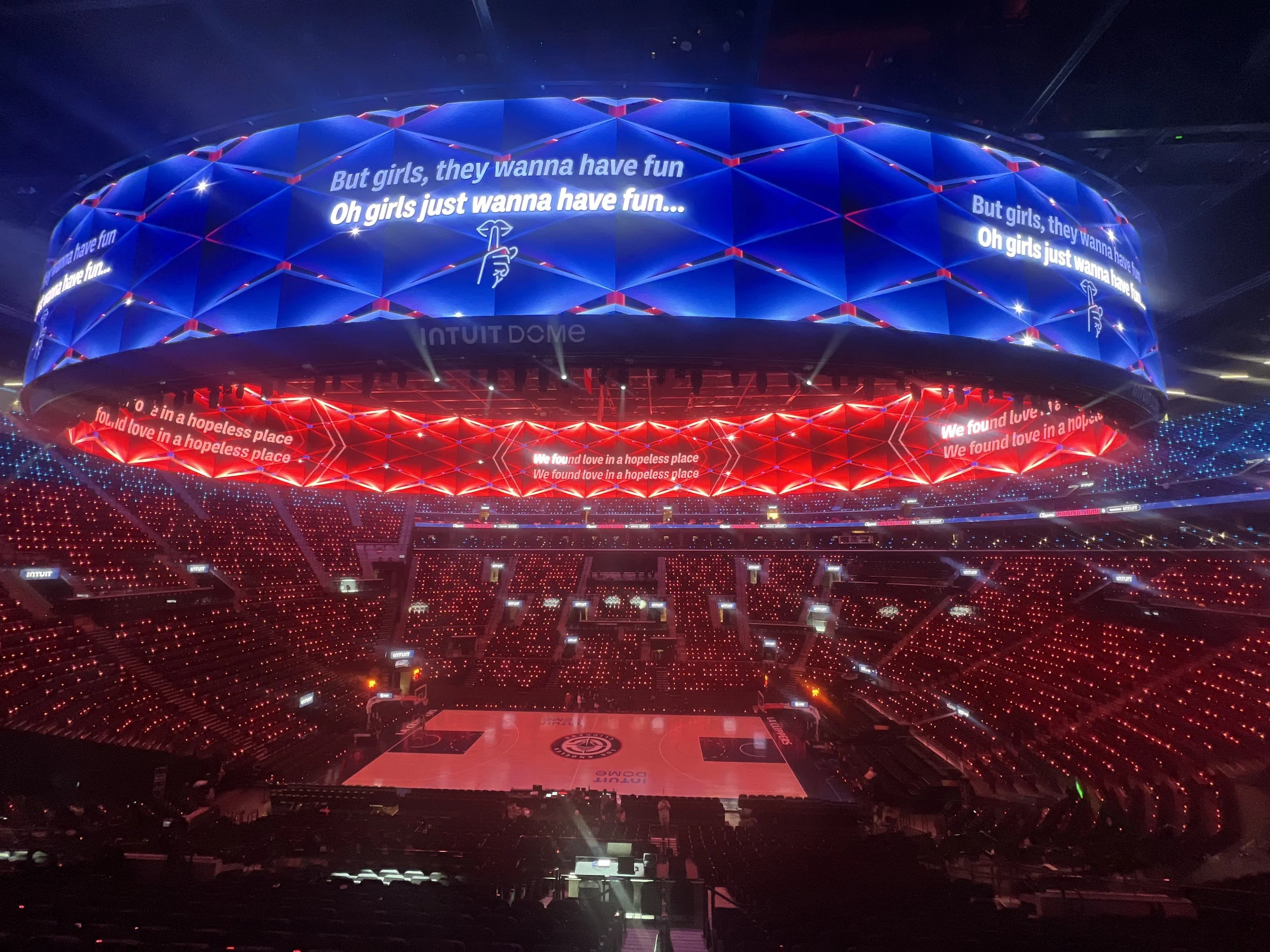 Intuit Dome’s 233 million pixel-Halo screen is a first of its kind, and Spinifex Group was tasked to not only create the content for the Halo, but to craft a gameday experience that engages and excites every fan in the arena. Among the most unique contributors to that experience are the Fan Activations, games and activities that pull in all 18,000 ticketholders unlike anything seen before.